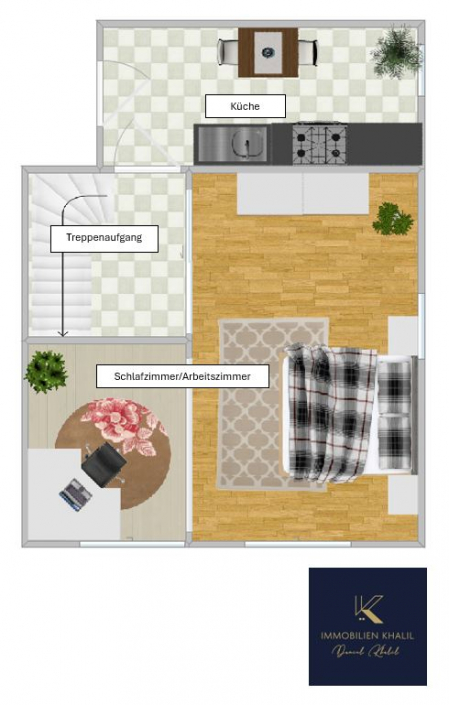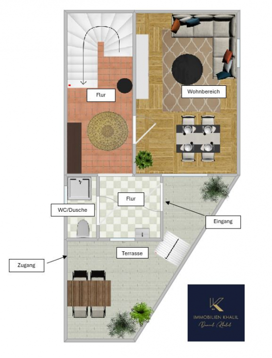 - Böden: Laminat, Parkett, Terrazzotreppe-Steinboden